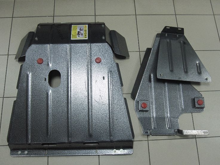 Надежно защищает двигатель и агрегаты трансмисси снизу.